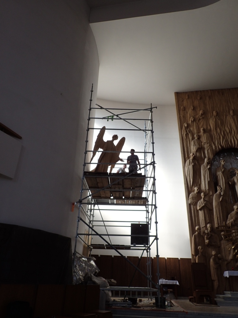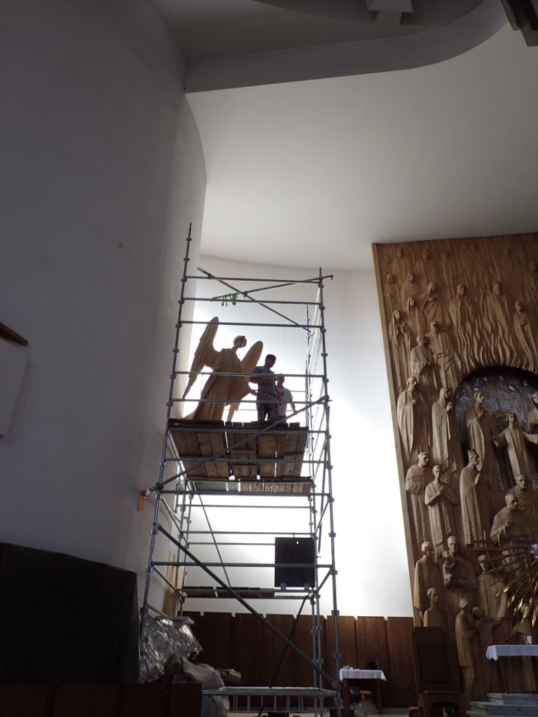 Sanktuarium Najświętszej Rodziny w Krakowie Rusztowania i pomoc w montażu rzeźb. Autor Profesor Wincenty Kućma WSTECZ